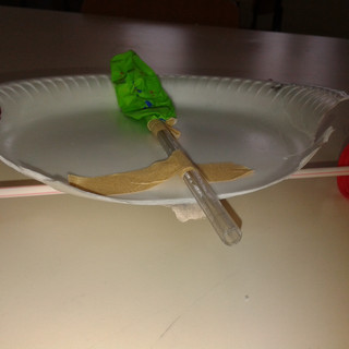 Essa experiência com o carrinho foi um difícil. Primeiro nós montamos o carro com quatro tampinhas de garrafa, uma garrafinha pet, um tubinho de caneta, canudinhos de refrigerante, palito de churrasco e um balão. Com o carrinho pronto, com o tubinho na caneta e o balão na ponta enchemos o balão, depois era só soltar o carrinho no chão e o balão vai se esvaziando e o carrinho vai andar.